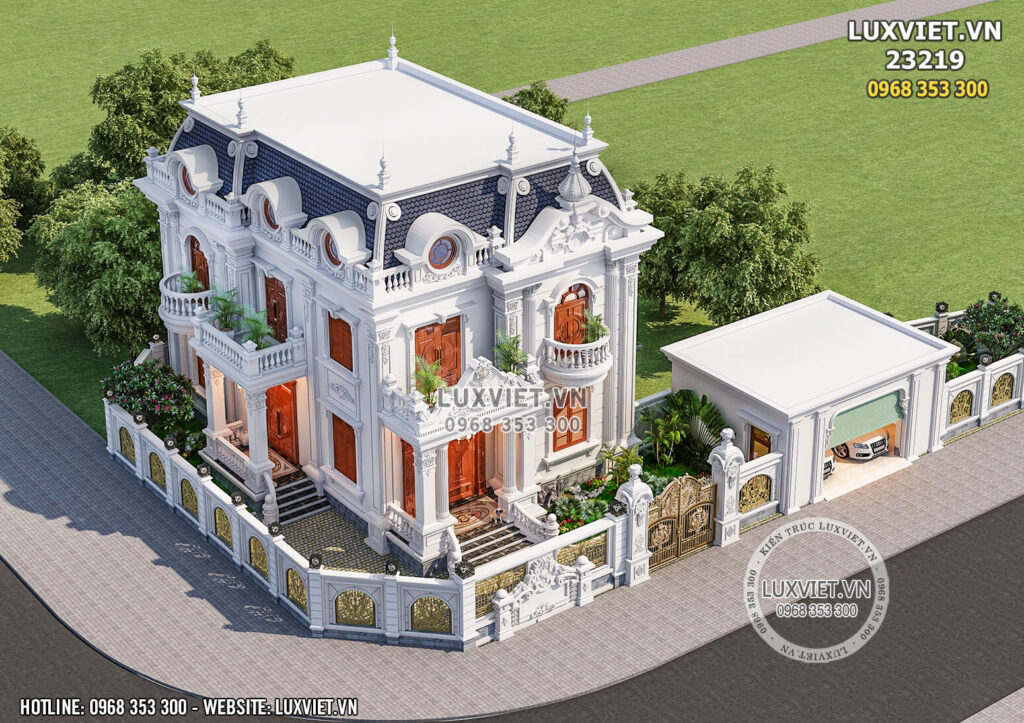 - Thiết kế biệt thự lâu đài 3 tầng Pháp đẹp ở Châu Quỳ, Hà Nội
